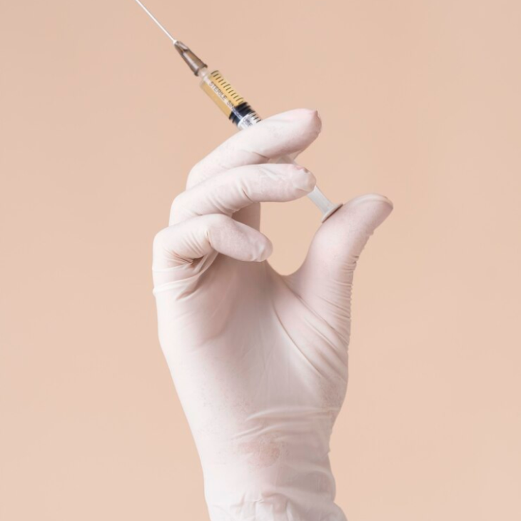 Withdraw the needle from the injection site and clean the area with a cotton ball or sterile gauze. Dispose of the needle and syringe safely.